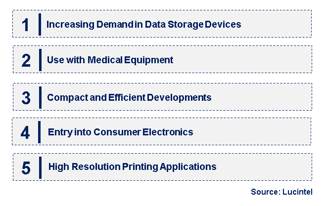 These strategic growth opportunities are revolutionizing the 405nm laser diode market by expanding applications and driving technological advancement. Focus on data storage, medical imaging, consumer electronics, printing, and wearable technology is shaping the market and supporting its growth.
