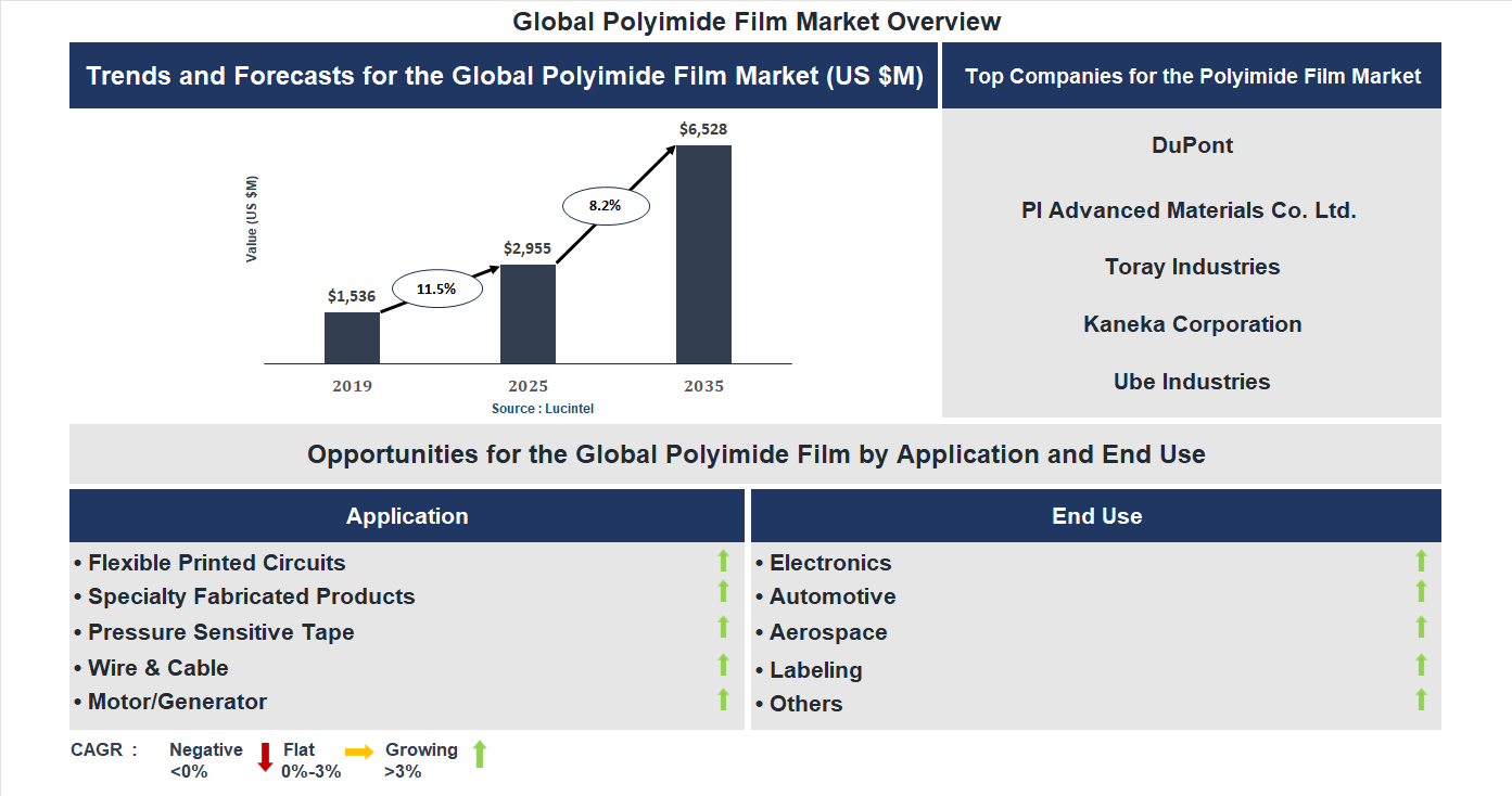 Answer: The global polyimide film market is expected to reach an estimated $6528 million by 2035.