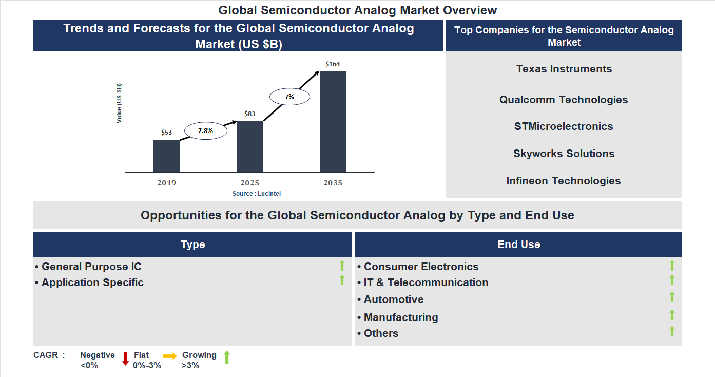 Answer: The global semiconductor analog market is expected to reach an estimated $164 billion by 2035.